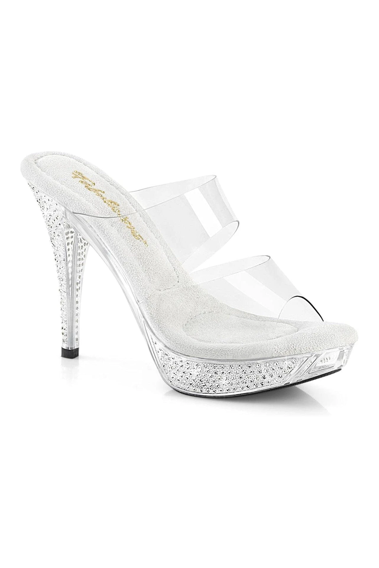 4 1/2″ Heel, 1″ Platform Two Band Slide w/Rhinestone