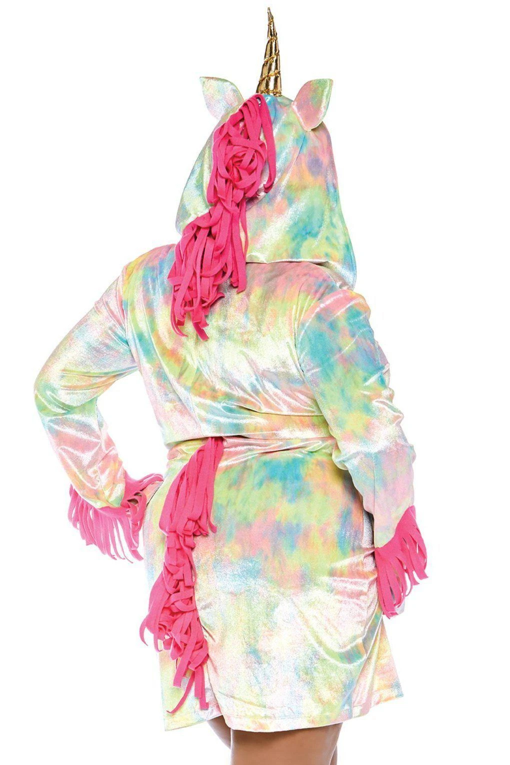 Leg Avenue Enchanted Unicorn, features velvet zipper front dress with tail and magical gold horn hood