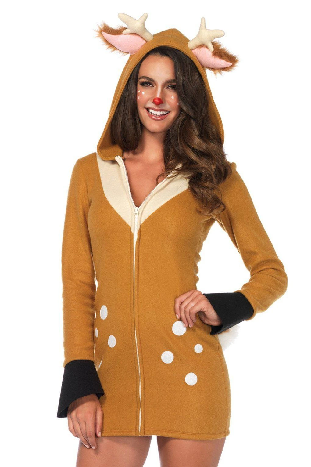 Leg Avenue Cozy Fawn, zipper front fleece dress with ear hood and fawn tail