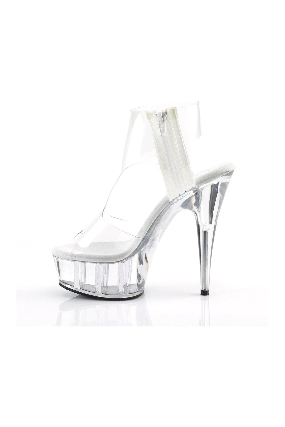 6″ (15.2cm) Stiletto Heel 1 3/4″ (4.5cm) Platform T-Strap Bootie Sandal Inside Zip Closure