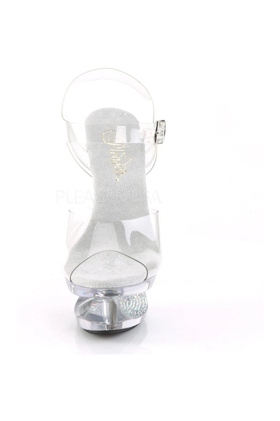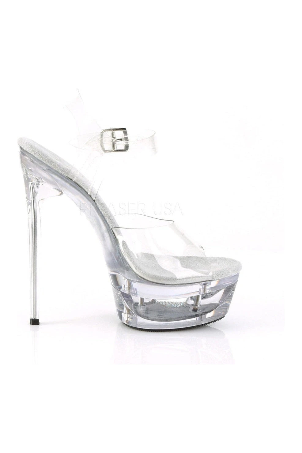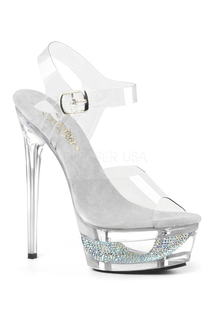 6 1/2″ (165mm) Heel, 1 3/4″ (44mm) Cut Out Platform Ankle Strap Sandal Featuring Rhinestones Covering the Entire Outer Platform Cut-out Area