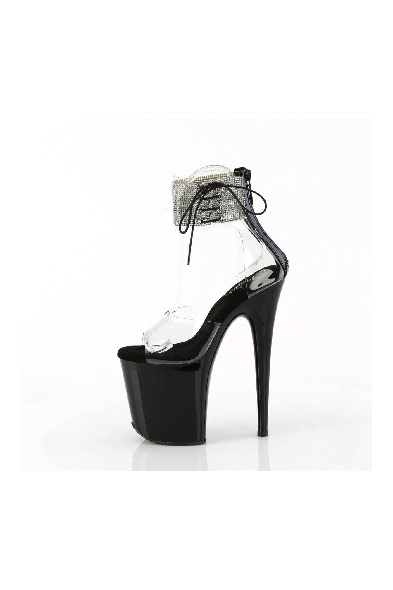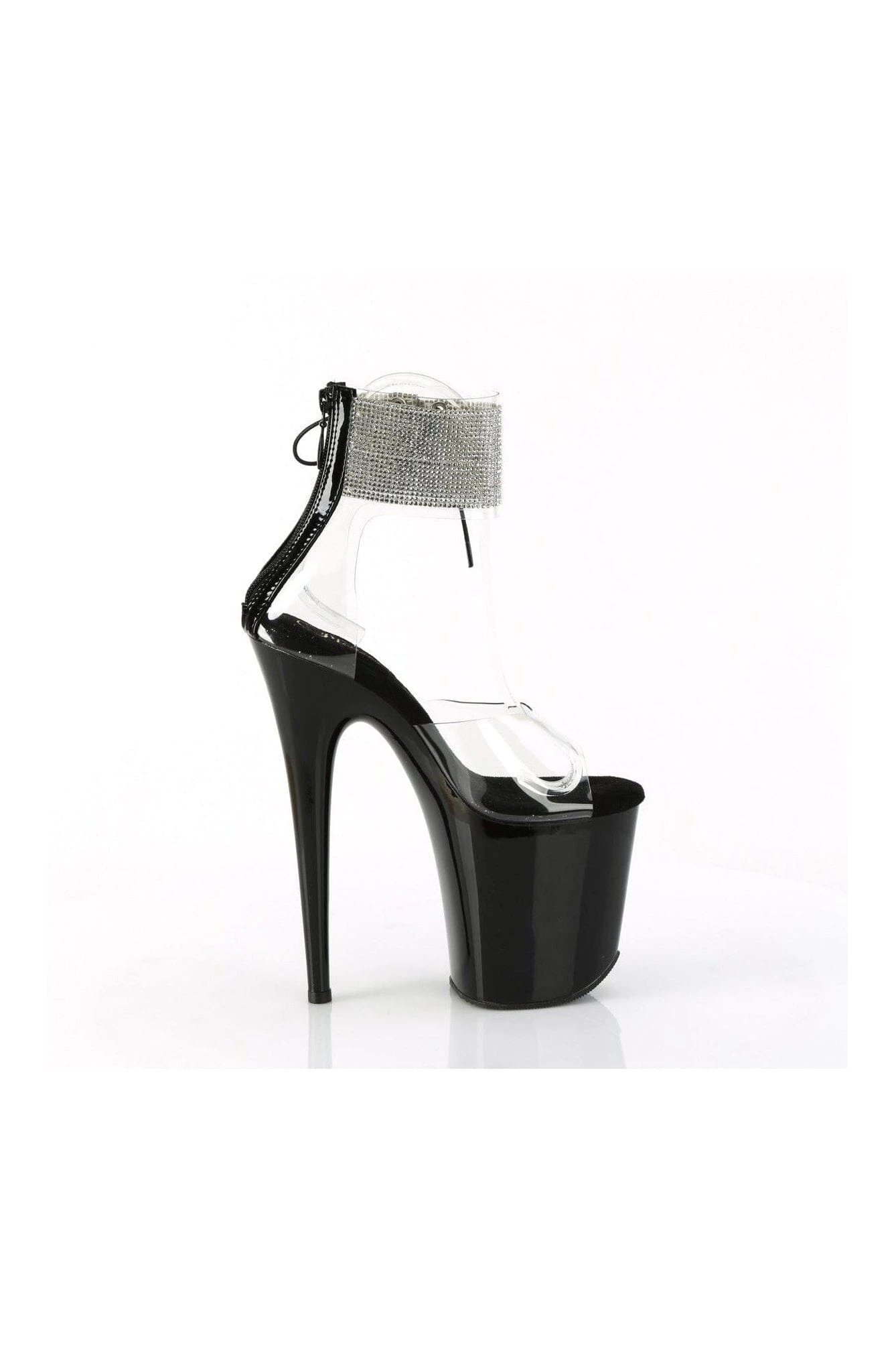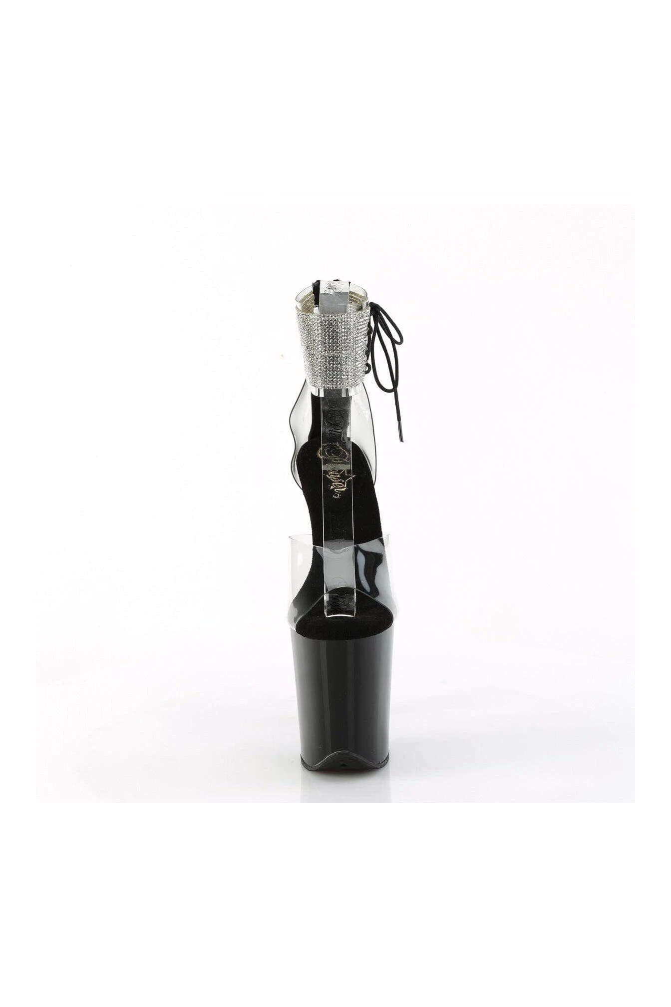 8″ Heel, 4″ Platform Rhinestoned Ankle Cuff Sandal, Back Zipper