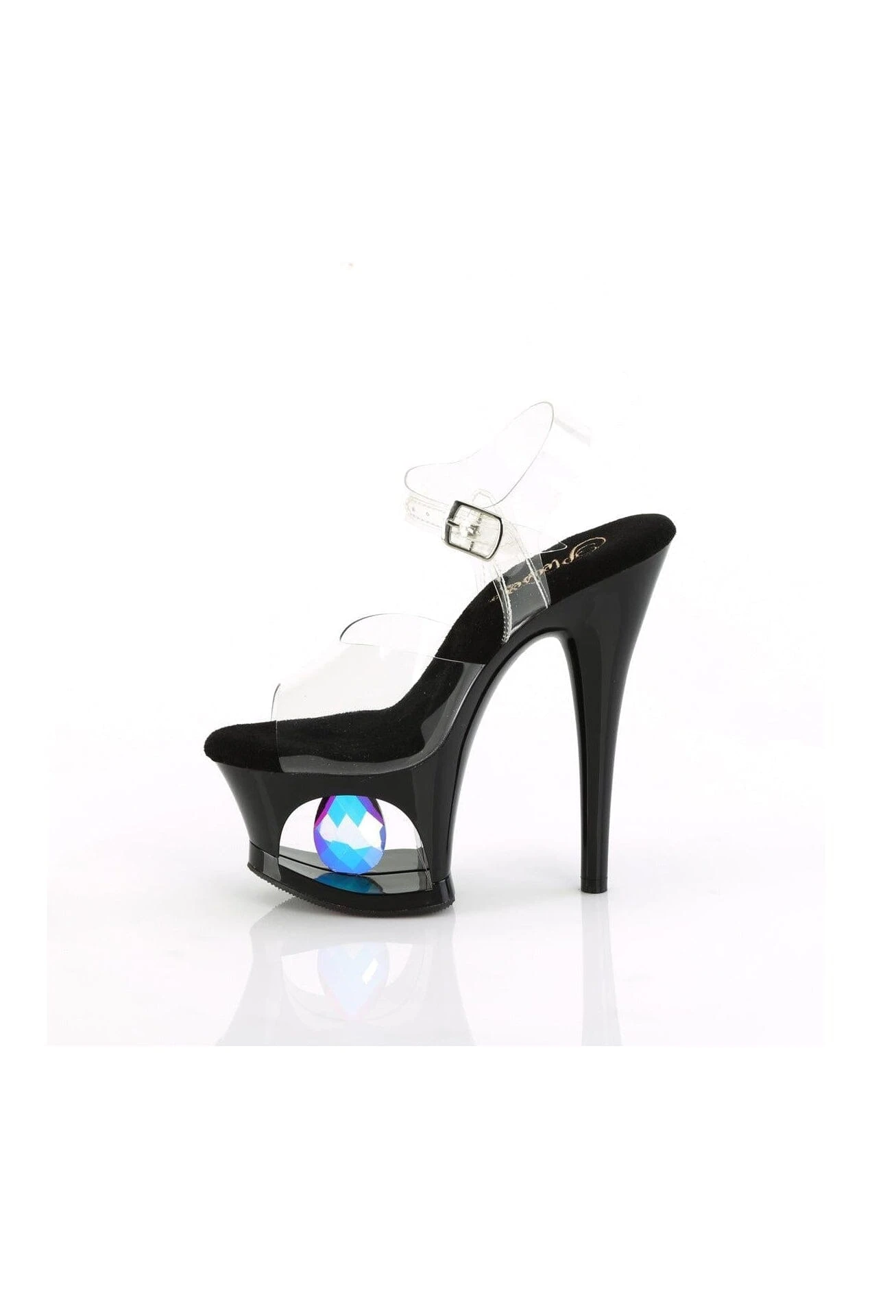 7″ Heel, 2 3/4″ Cut-Out Platform Ankle Strap Sandal w/Prisms