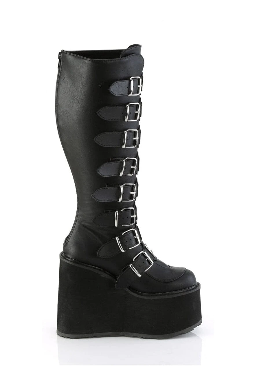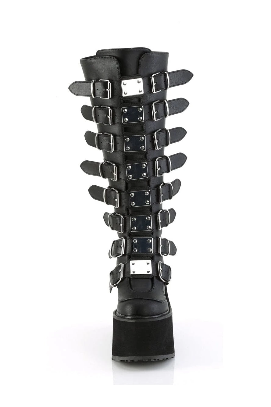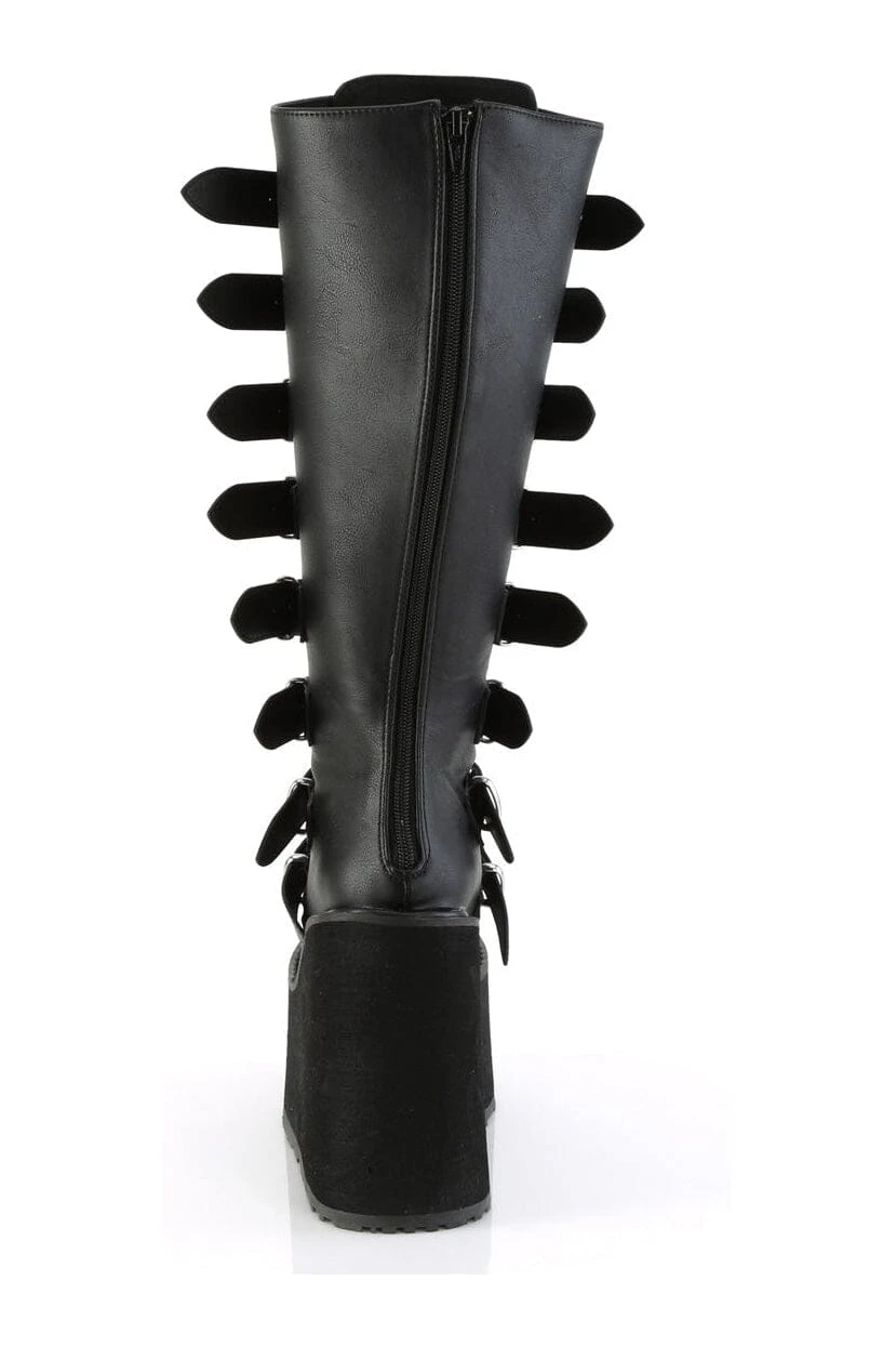 5 1/2″ Platform Wide Calf Knee Boot with Buckle Straps, Back Zipper