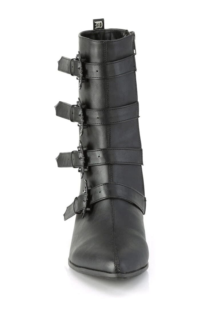 1 1/2″ Block Heel Pointed Toe Mid-Calf Boot, Side Zipper