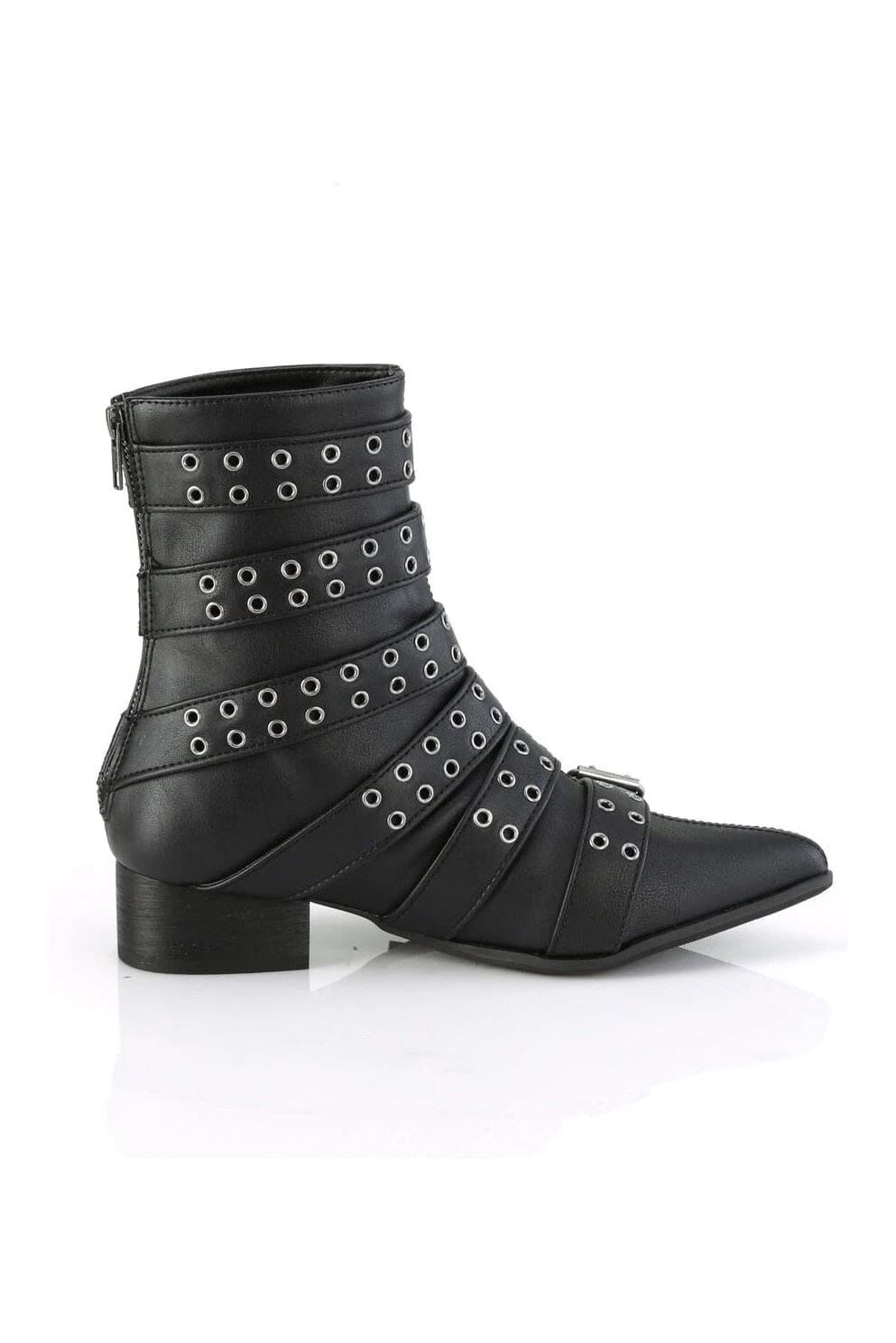 1 1/2″ Block Heel Pointed Toe Calf High Boot, Back Zipper
